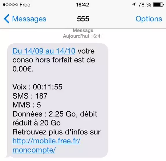 Afin que chacun puisse savoir aisément de quel quota il dispose, Free Mobile a ajouté ce week end une indication supplémentaire dans le suivi conso (disponible en appelant ou en envoyant un SMS au 555) : « débit réduit au delà xxGo ». Les abonnés peuvent ainsi savoir de quelle quantité de data il dispose, 3Go ou 20Go.