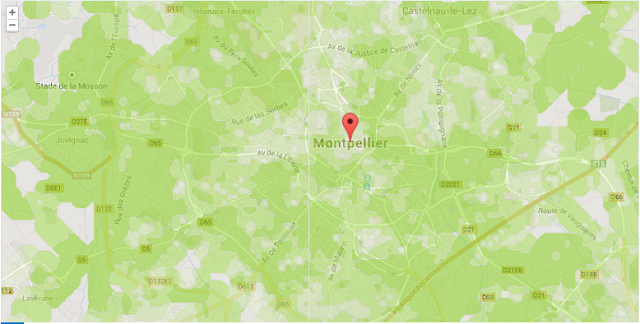 A Montpellier, 36 antennes sont déclarées actives sur le territoire. Aux alentours du Stade de la Mosson, la puissance du signal Free Mobile relevé est maximale. Le reste de la ville est une alternance entre signal fort et signal faible et de quelques petites zones dispersées qui n’accèdent pas au réseau propre de Free Mobile.