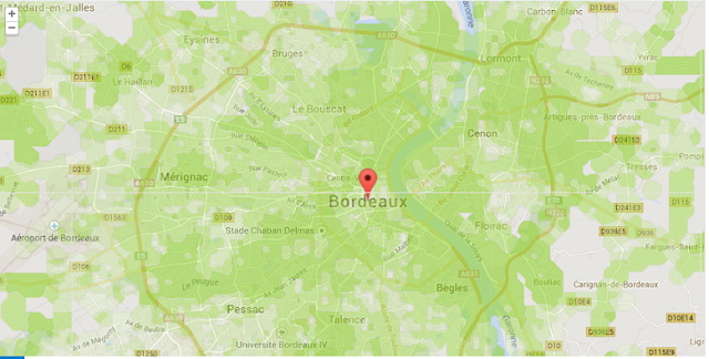 Pour Bordeaux, 32 antennes sont déclarées actives sur l’agglomération. La ville est globalement couverte, même si de nombreuses zones affichent une puissance de signal qui reste très faible. De nombreuses zones comme l’Espace Medoquine, la Gare Saint-Jean et les quais de la Garonne reçoivent un excellent signal des antennes Free Mobile.