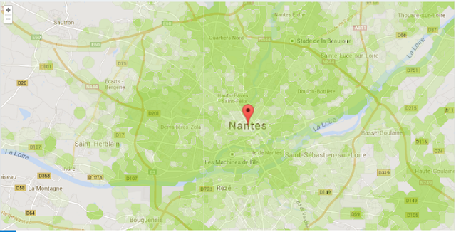 Sur l’agglomération de Nantes, 33 antennes sont déclarées actives. Du côté de la couverture relevée par Sensorly, les alentours du Stade de la Beaujoire, les Quartiers Nord et Dervallières-Zola affichent une puissance de signal reçu proche de son maximum. La situation est plus aléatoire au centre-ville et à Breil-Berberie.