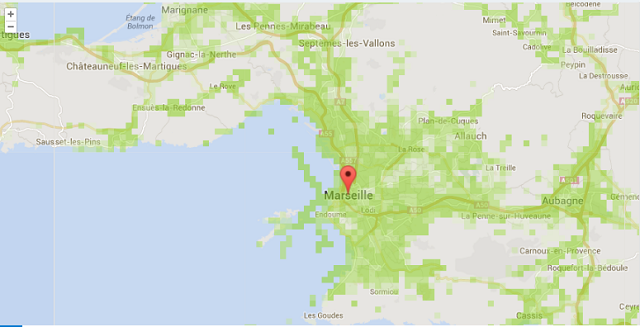 A Marseille, avec 85 antennes déclarées actives, le littoral est parfaitement couvert par les antennes Free Mobile. Couverture et puissance du signal sont au rendez-vous. Des traces de couverture ont également été relevées par Sensorly au large de Marseille. Néanmoins, la couverture 3G sur le réseau propre de Free Mobile se désagrège à mesure que l’on s’éloigne de la côte, laissant apparaître une puissance plus faible et de plus en plus de "trous". Le 16e arrondissement est également laissé sans couverture.