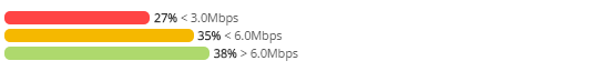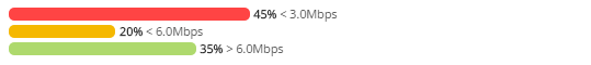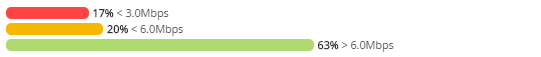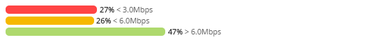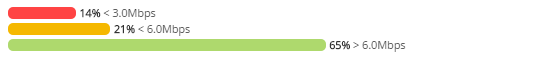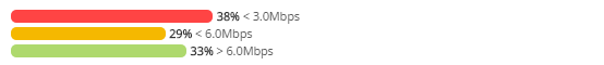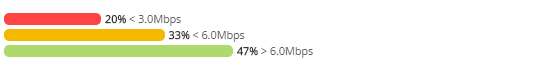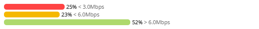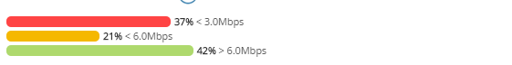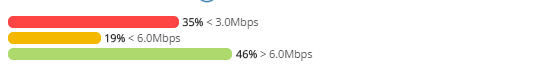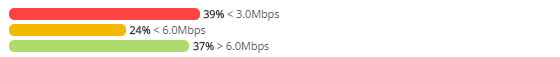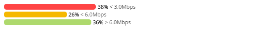- Bouygues obtient 37% du territoire au dessus de 6 Mbits contre 39 % inférieur à 3 Mbits.