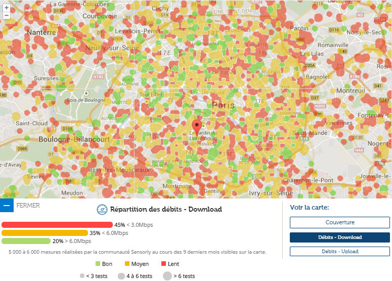 Dans cet article, Univers Freebox s’intéresse aux débits descendants constatés par les utilisateurs sur le réseau propre de Free Mobile, réseau non dégradé, grâce aux données relevées via l’application Sensorly dans les 5 plus grandes villes de France. Quels seraient les performances de Free Mobile sans l’itinérance d’Orange dans ces 5 grandes villes ?