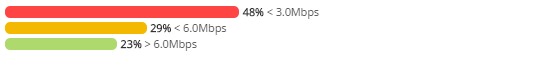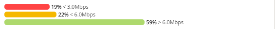 - Bouygues de son côté n’arrive que troisième avec 33 % du territoire au dessus de 6 Mbits contre 38% en dessous de 3 Mbits.