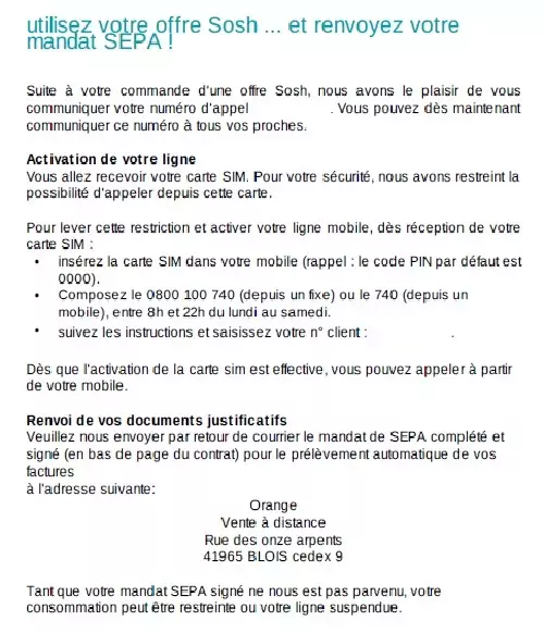 Voici un extrait du mail d’activation de ligne mobile que sont amenés à recevoir les abonnés