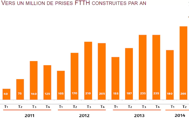 FTTH construite continue d’augmenter et pourrait atteindre 1 million de prises construites par an à partir de la fin de l’année 2014.