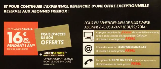 Canal+ indique que cette offre est réservée aux abonnés Freebox éligibles au service de télévision, ayant reçu un courrier présentant l’offre promotionnelle. Toutefois, selon nos constatations, même si vous n’avez pas reçu le courrier, vous pouvez tout de même bénéficier de cette offre en utilisant le code FRNL.