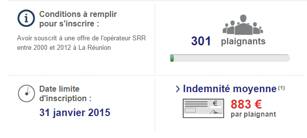 C’est désormais aux consommateurs de faire valoir leurs droits, l’ association de consommateurs Action Civile lance ainsi une procédure de groupe contre SFR, sur ce même sujet. Pour faire valoir ensemble leurs droits, ils invitent ainsi les abonnés à l’opérateur SRR ayant souscrit à une offre entre 2000 et 2012 à se faire connaître afin de réclamer une indemnisation. Ils réclament 883 € par plaignant. Les inscriptions sont ouvertes jusqu’au 31 janvier 2015. 301 plaignants ont déjà fait la démarche.