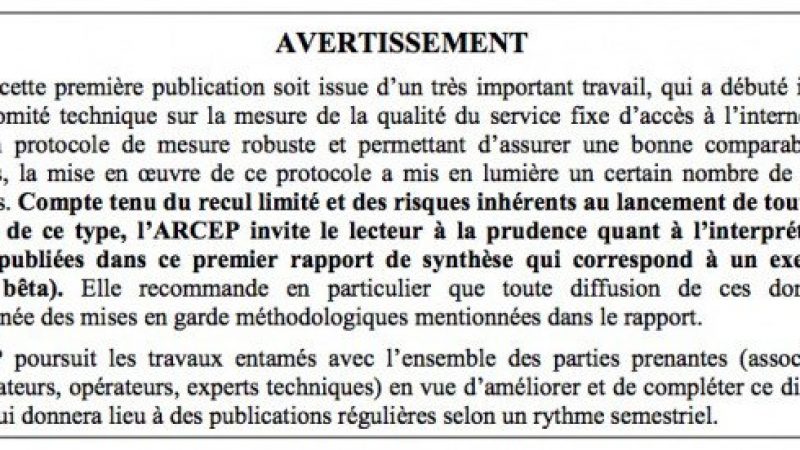 Une publication pour laquelle l’ARCEP prenait quelques précautions concernant la fiabilité des résultats :