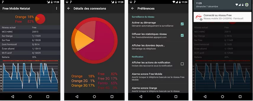Disponible au téléchargement sur Google Play, l’application permet notamment de connaître le pourcentage d’utilisation de chaque réseau avec des informations détaillées.