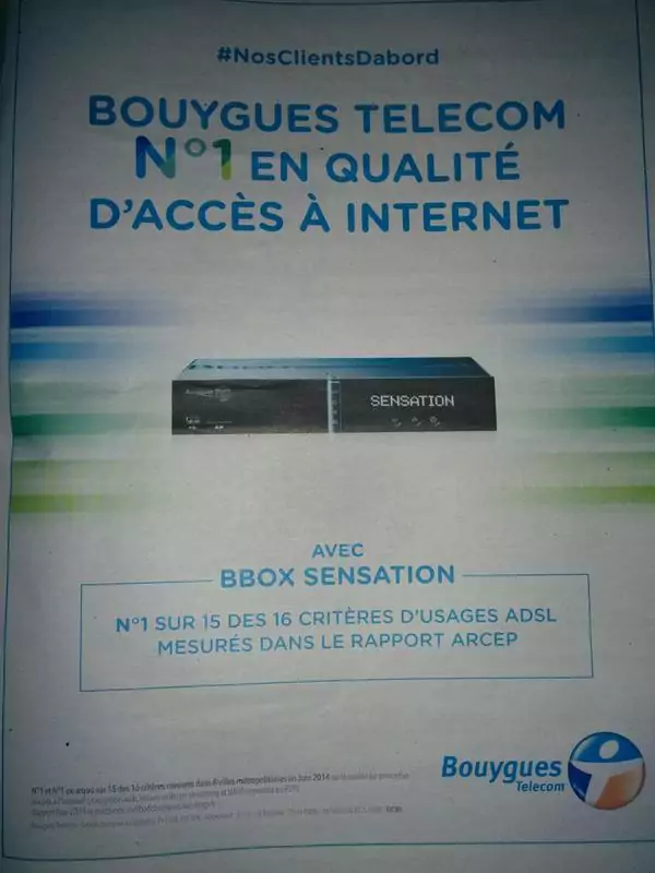 Une attaque qui n’a visiblement pas impressionné Bouygues Télécom puisque ce dernier a lancé une nouvelle campagne de publicité dans les journaux, en affichant « Bouygues Télécom N°1 en qualité d’accès à Internet ».