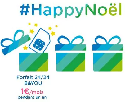2ème surprise : Toujours à partir du jeudi 11 décembre, les clients Bouygues Telecom pourront souscrire un Forfait B&YOU 24/24 additionnel, avec appels et SMS/MMS illimités, et 20 Mo de data, pour 1€/mois pendant 1 an. Ce forfait est habituellement proposé au tarif de 10,99 euros.