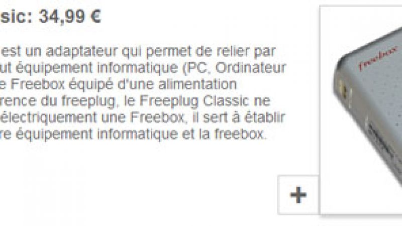 Ce Freeplug Classic, qui était proposé à 34,99€, vient donc d’être retiré de la boutique en ligne Freebox. Les Freenautes qui souhaitent relier leur ordinateur en CPL devront donc se tourner vers un Freeplug intégrant l’alimentation.