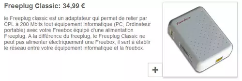 Ce Freeplug Classic, qui était proposé à 34,99€, vient donc d’être retiré de la boutique en ligne Freebox. Les Freenautes qui souhaitent relier leur ordinateur en CPL devront donc se tourner vers un Freeplug intégrant l’alimentation.