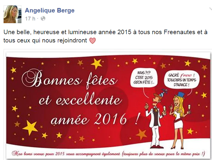 Free, Free Mobile et Angelique Berge vous souhaitent une bonne année 2015