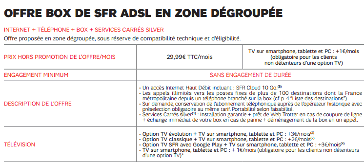 En revanche, c’est la grande incompréhension pour les abonnés double-play qui ne souhaitent pas profiter des services de télévision des box SFR, se voient quand même être facturé de cet euros supplémentaire souscrivant ainsi obligatoirement à l’option TV sur smartphone, tablette et PC.