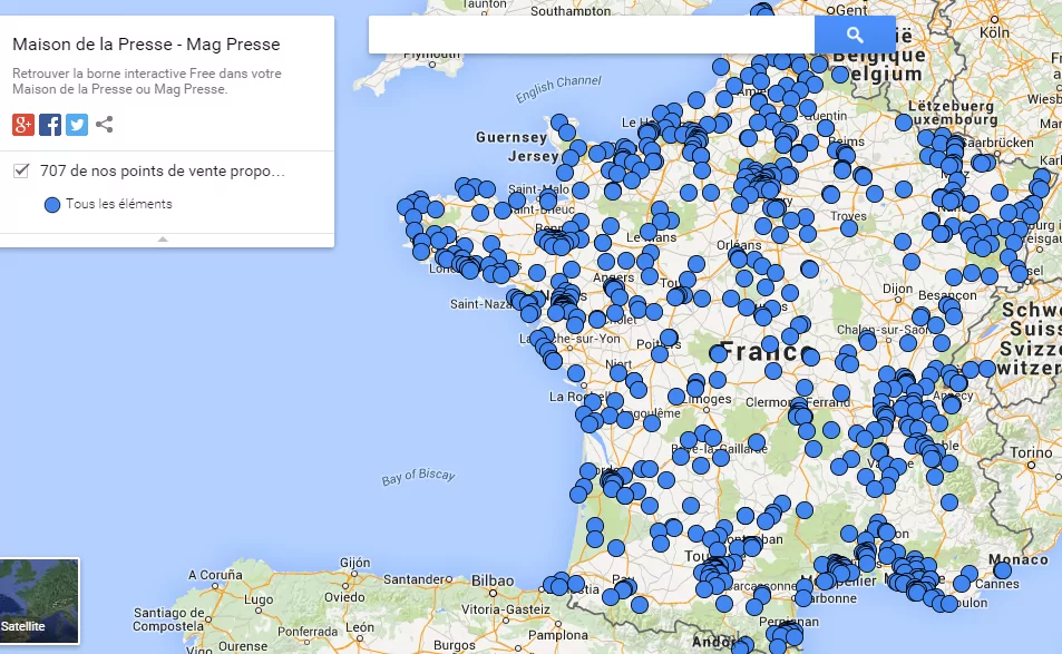 Désormais ce sont 707 bornes qui sont installées sur tout le territoire métropolitain, en dehors des Free Center. Alors que NAP à officiellement racheté les Maisons de la Presse et Presse Mag, Free poursuit sont déploiement de bornes automatiques, avec 9 de mieux en 15 jours.