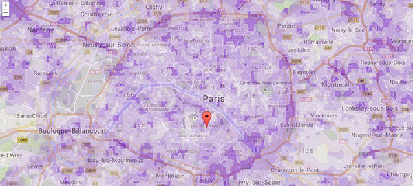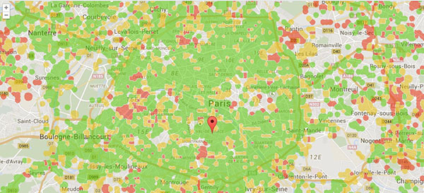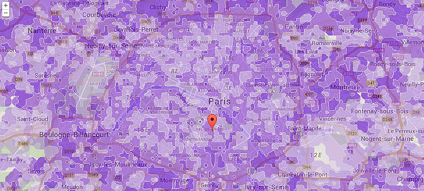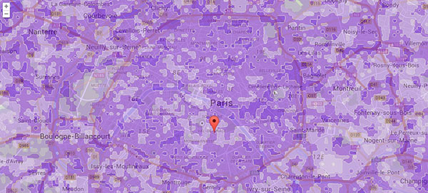 Si la carte de couverture se montre moins touffue que les autres opérateurs, Free peut se vanter d’avoir les meilleurs débits. En effet 63 % de la population parisienne arrive à décrocher des débits supérieurs à 30 Mb/s.