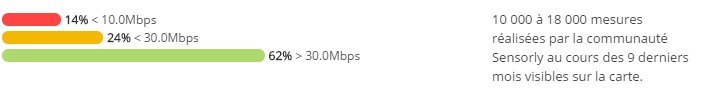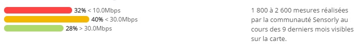 Coté couverture ; si celle-ci n’as rien à envier à celle des autres opérateurs, au niveau débits SFR semble prendre du retard. Seul 28 % des abonnées SFR ont des débits supérieurs à 30 Mb/s, et 32 % ont un débit inférieur à 10 Mb/s.