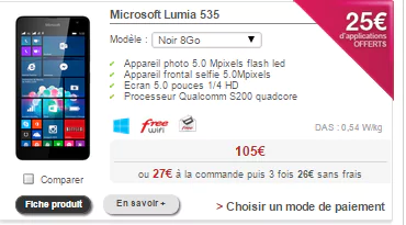 Nouveauté Free Mobile : 25 € d’applications offerts pour l’achat d’un Microsoft Lumia 535