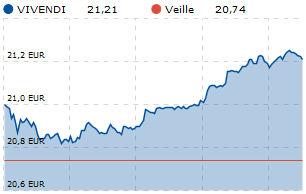 La cession des 20 % restant de SFR à Numéricable secoue les balances boursières. Après avoir accepté l’offre de Patrick Drahi, l’action Vivendi perdait 5,29 % à 20,67 euros, pendant que SFR-Numéricable grimpait de 5,92 % à 56,68 euros. La hausse a repris ce matin pour Vivendi avec 2,43 % à 21,245 euros.
