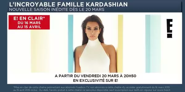 Le compte Twitter de l’Aktu Freebox vient d’annoncer qu’une nouvelle chaîne sera en clair ce mois-ci. Il s’agit de la chaîne people E ! disponible sur le canal 37 de Freebox TV. Elle sera accessible gratuitement pour tous les Freenautes, disposant du service TV, du 16 mars au 15 avril.