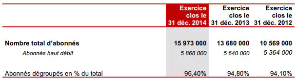 Free indique qu’il a poursuivi « l’optimisation » des réseaux fixes (dégroupage, migration vers la technologie VDSL2 et déploiement FTTH). Au cours de l’année 2014, Free précise qu’il « a maintenu ses efforts afin