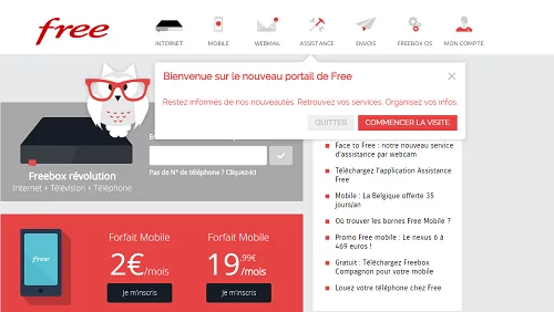Ce dernier entame sa visite guidée par la barre supérieure permettant d’accéder à tous les services dédiés aux abonnés. Abonnement à un forfait box, un forfait mobile, l’accès au compte mail Free, l’espace dédié à l’assistance, ou encore l’accès aux espaces abonnés. Les surprises commencent… Le site propose un espace permettant l’envoi de fichier volumineux…. Si cette fonctionnalité existait déjà, elle est désormais largement mise en valeur.