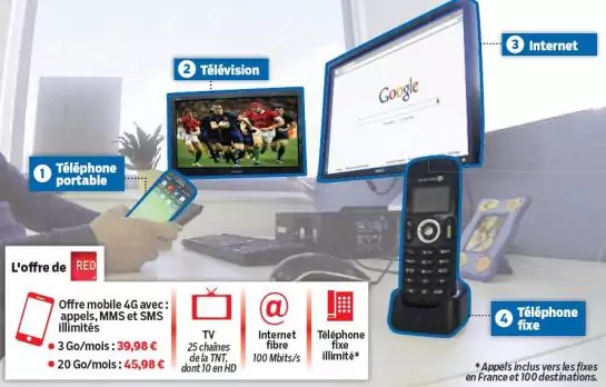 Attaqué sur le mobile depuis 2012, SFR a décidé de contre-attaquer sur la Fibre avec une offensive sur le Quadruple Play. RED de SFR s’attaque ainsi clairement à Free en proposant notamment des offres très ressemblantes dans le mobile (forfait 2H à 2 euros, forfait 4G 20Go à 15,99 euros).