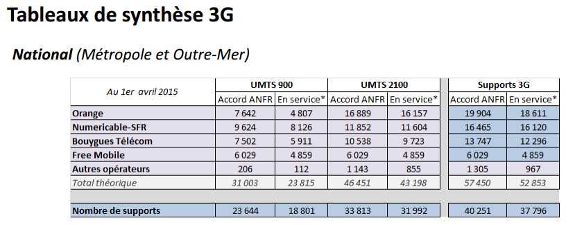 Du côté de la 3G, Free Mobile s’est montré moins actif avec 114 nouveaux sites actifs pour un total de 4859 supports 3G actifs. Néanmoins, le cap des 5000 antennes actives sur tout le territoire se rapproche assez rapidement. Celui des 6000 sites déclarés est en revanche passé au mois de mars.