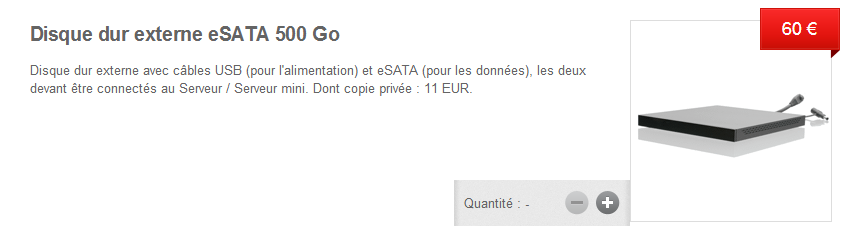 Univers Freebox vous annonçait en exclusivité il y a un mois que Free allait lancer une boutique dédiée pour la Freebox mini 4K, c’est désormais chose faite. Elle est disponible depuis l’interface abonné Freebox. Ainsi que nous vous l’indiquions on retrouve dans cette boutique un disque dur eSATA de 500 Go. Celui-ci est proposé au tarif de 60 euros, « dont 11 euros pour la taxe copie privée » précise Free.