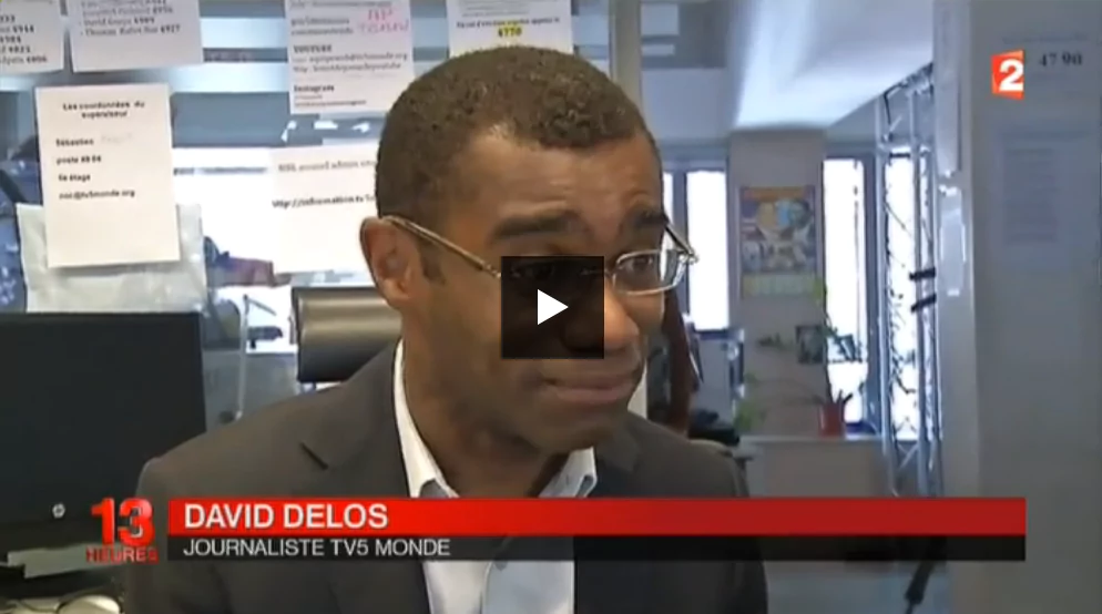 Peu de temps après l’attaque, la menace était si grande que la chaîne a laissé apparaître ses nouveaux mots en passe… en plein JT de 13h… Jetez un oeil sur les feuilles scotchées derrière le journaliste !