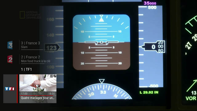 Une fois vos chaînes préférées sélectionnées, il suffit de quitter le menu et vous ne verrez désormais apparaître dans la zapliste de Freebox TV que les chaînes que vous avez sélectionnées. Dans l’exemple ci-dessous la une, la 2 et la 3.