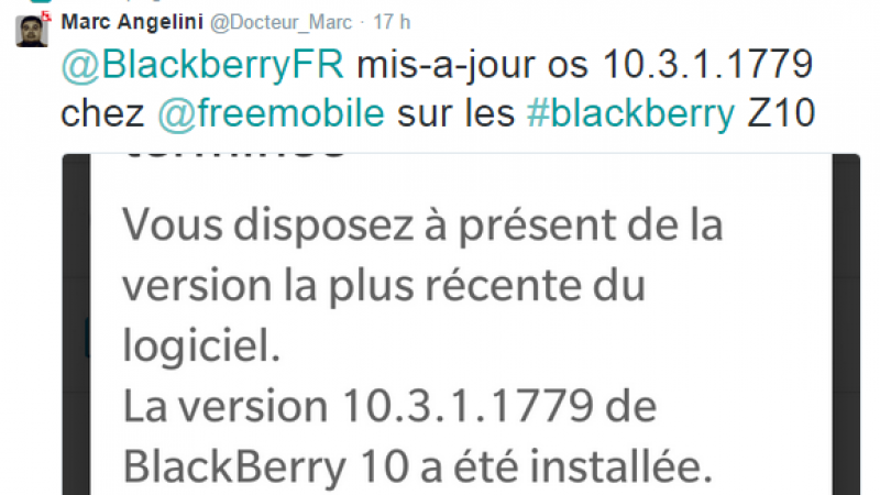 Les abonnés Free Mobile, en possession d’un Blackberry Z10, reçoivent progressivement la mise à jour Blackberry 10.3.1.1779. Celle-ci est déployée depuis quelques semaines et apporte de nombreuses améliorations/corrections au système d’exploitation mobile.