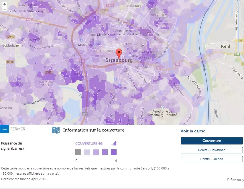 Avec les données de notre partenaire Sensorly Univers Freebox vous propose un focus sur Strasbourg 7ème ville de France par sa population et vous fait découvrir la carte de la couverture du réseau 4G et des débits.