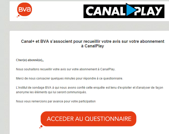L’enquête prend une dizaine de minutes et permet de donner à CanalPlay un retour sur cette nouvelle plateforme. Point par point, toutes les nouvelles fonctionnalités sont ainsi évaluées. Cliquez sur ce lien pour répondre à cette enquête.
