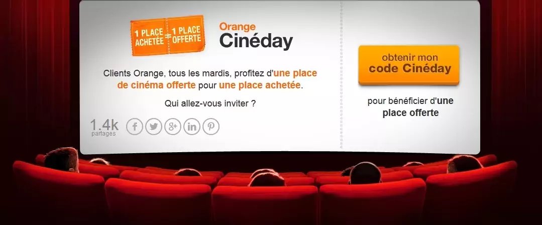 Orange change les règles de Cineday, un service permettant d’obtenir une place de cinéma gratuite pour une place achetée le mardi. Ce bonus qui était inclus dans tous les forfaits de la marque, lancé en 2011, avait déjà été limité en 2014 lorsqu’il s’était vu retiré des forfaits Sosh.