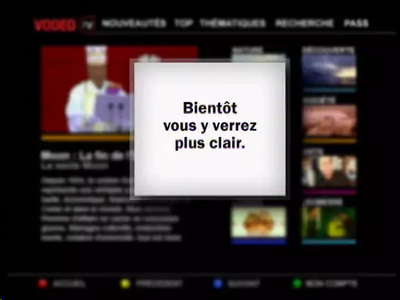 Nous vous l’avons annoncé, Vodeo va arriver le 21 mars sur Freebox TV. En attendant cette date, le canal 108 de Freebox TV a déjà été créé et une image fixe annonçant l’arrivée de Vodeo est affichée. On y voit en arrière plan la future interface de Vodeo sur Freebox un peu floutée, avec en premier plan un message : « bientôt vous y verrez plus clair »