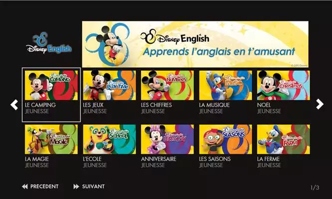 Les enfants de 3 à 8 ans retrouveront leurs héros préférés de la Maison de Mickey et pourront apprendre l’anglais tout en s’amusant : ils pourront choisir la vidéo du thème qui les inspire : la ferme, l’école, les couleurs, la magie…