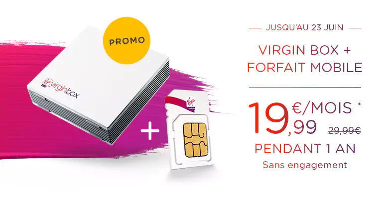 Encore une nouvelle promotion. Virgin Mobile a lancé ce matin une nouvelle offre promotionnelle ADSL. Du Jeudi 07 mai 2015 au mardi 23 juin 2015 inclus, l’ensemble des clients souscrivant à l’offre Virgin Box By SFR, bénéficieront d’une remise exceptionnelle de 10€ sur 12 mois. Soit une offre ADSL à 19.99€ pendant 1 an. Cette dernière est bien évidemment compatible avec les offres 4P (quadrule play).