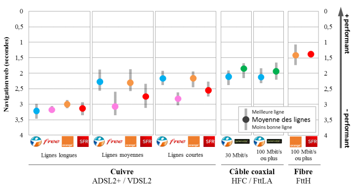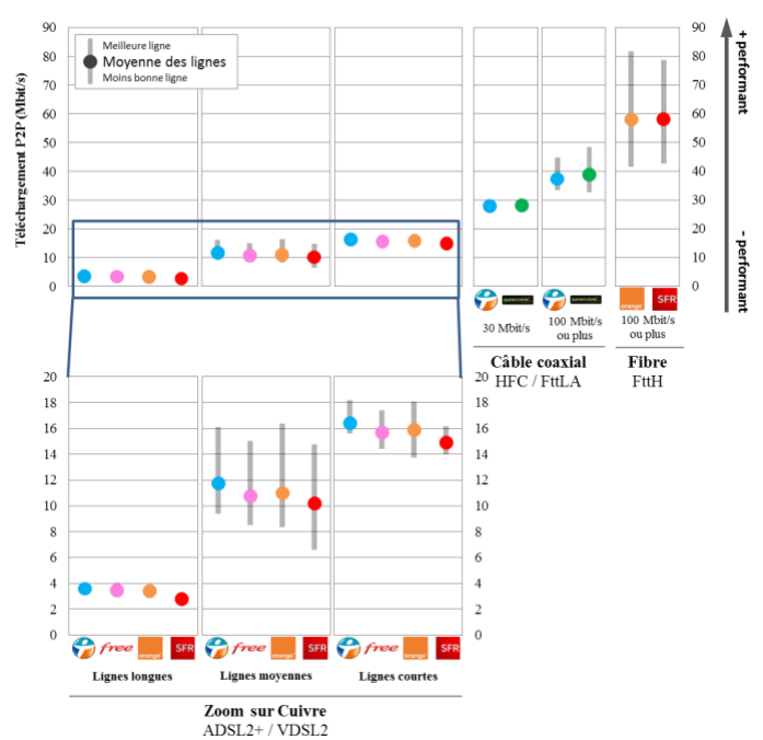 Les mesures concernent les cinq plus gros opérateurs et les trois technologies principales d’accès à l’internet fixe (xDSL, ADSL2+, VDSL2), fibre optique avec terminaison coaxiale et fibre optique jusqu’à l’abonné. Le dispositif ne concerne que les opérateurs métropolitains totalisant plus de 100 000 abonnés dans l’une des six catégories d’accès définies. 5 opérateurs sont aujourd’hui concernés par au moins l’une de ces catégories : Bouygues Telecom, Free, Numericable, Orange et SFR.