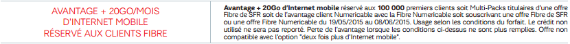 L’astuce de SFR : un « avantage +20Go/mois d’Internet Mobile réservé aux 100 000 premiers clients Fibre »
