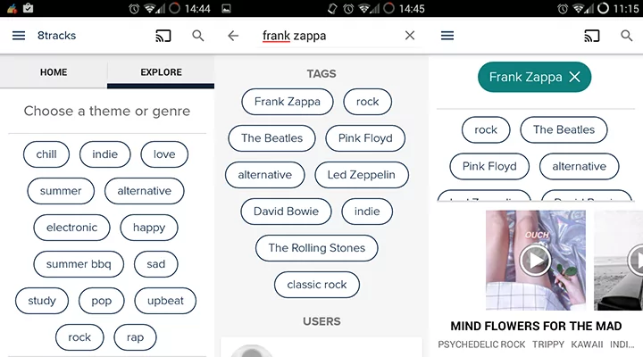 8Tracks est un player audio disponible à la fois sur smartphone et tablette android mais aussi sur ordinateur (il faudra cependant avoir Google chrome et son extension Google cast pour pouvoir le caster sur la mini 4k). Cette application vous propose des playlists musicales en fonction de vos goûts, il suffit de faire une recherche et il vous proposera directement diverses playlists en rapport avec la recherche.