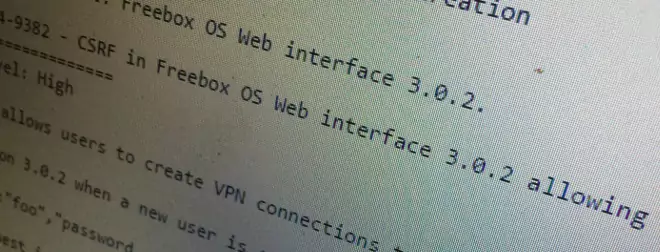 « Free permet à ses utilisateurs de créer des connexions VPN à la maison. Dans la version 3.0.2 quand un nouvel utilisateur est créé, la demande suivante de JSON est envoyée à http://mafreebox.free.fr/api/v3/vpn/user/. Cette demande est vulnérable (CSRF) » explique Milw00rm.com. Concrètement, la faille, jugée critique, permettait à un attaquant de créer un compteur utilisateur VPN (réseau privé virtuel) sur les Freebox Révolution et d’accéder au réseau local. On comprend mieux pourquoi les développeurs Freebox ont rapidement corrigé la faille et remercié « Dau Huy Ngoc pour sa démarche responsable ». Le potentiel de cette faille était immense.