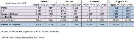 Les données publiées par l’ANFR au 1er décembre et au 1er janvier :