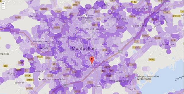 Du coté de Montpellier Bouygues possède 43 antennes, Free n’en a installé que 36 soit plus de deux fois moins que son concurrent Orange, qui de son coté en a 79. SFR quant à lui en a 64.