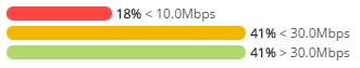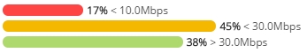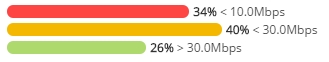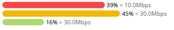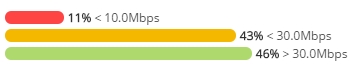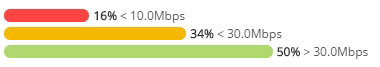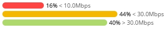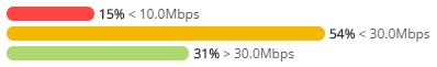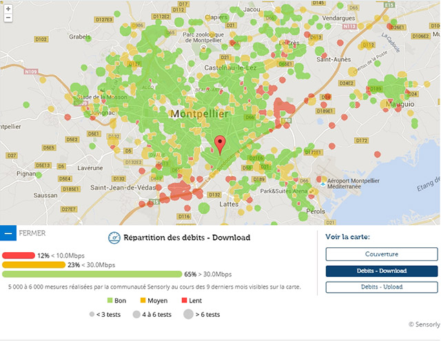 Même constat pour Montpellier, Bouygues Télécom reste premier sur la zone couverte. Comme précédemment Free, fait moins bien que ses concurrents sur la couverture 4G. Cette fois Free prend la tête niveau débits et avec une bonne avance, 65% de la zone couverte dépasse les 30 Mbps soit 24% de plus que le deuxième Bouygues.