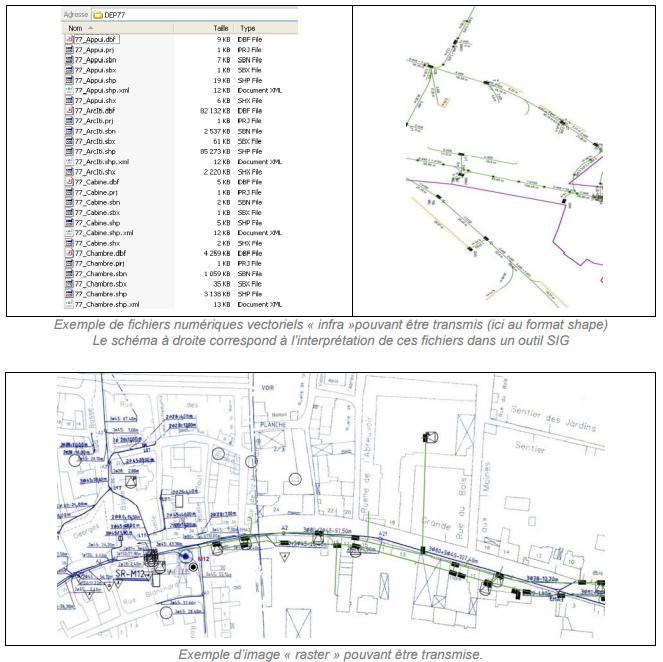 Ce dispositif prévoit que les opérateurs doivent communiquer les informations sollicitées par les collectivités dans un délai de deux mois et dans un format permettant leur exploitation, sous forme de données numériques vectorielles géolocalisées pouvant être reprises dans des systèmes d’informations géographiques, « DNVG SIG ».