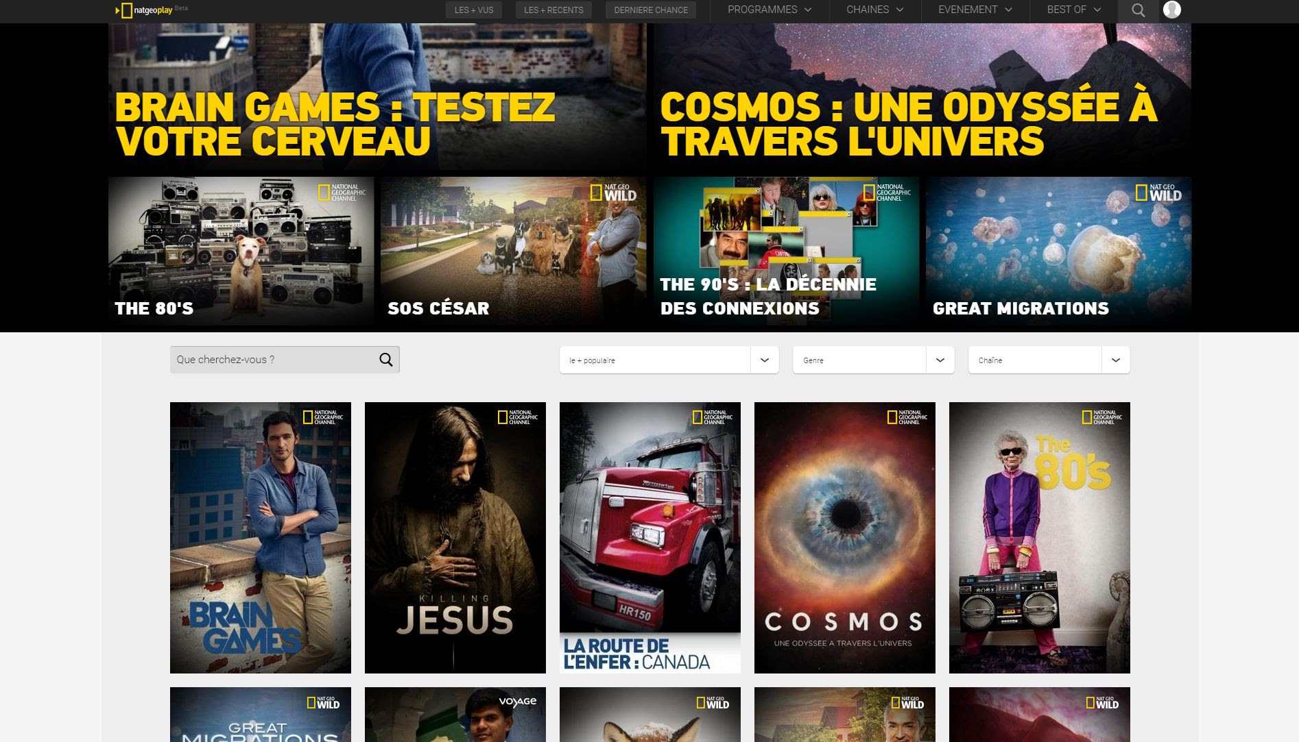 Nat Geo Play a donc été conçu comme un service premium, entièrement localisé, avec une expérience enrichie pour les utilisateurs. Les abonnés peuvent ainsi accéder aux temps forts des chaînes en rattrapage après leur diffusion antenne mais également accéder aux programmes les plus populaires des chaînes.