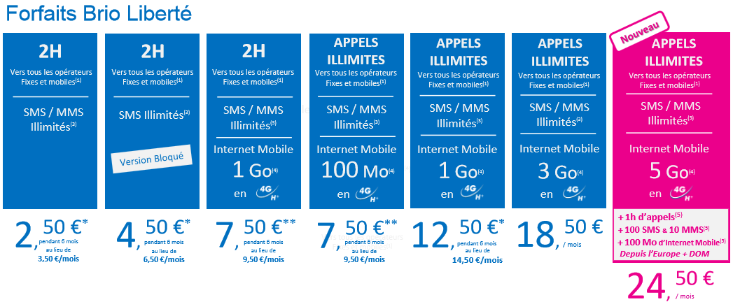 Coriolis lance un nouveau forfait 5Go avec option Voyage Europe (gamme Brio Liberté). Ce nouveau forfait sans engagement propose les appels illimités vers les fixes et mobiles en France, les SMS/MMS illimités et 5 Go de data en H+/4G jusqu’à 5 Go (débit réduit au-delà). Le forfait se distingue des autres offres de Coriolis puisqu’il intègre un « Avantage Voyage Europe & DOM ». Cet avantage inclut uniquement 1h d’appels + 100 Mo de Data 4G + 100 SMS + 10 MMS depuis l’Europe et DOM…